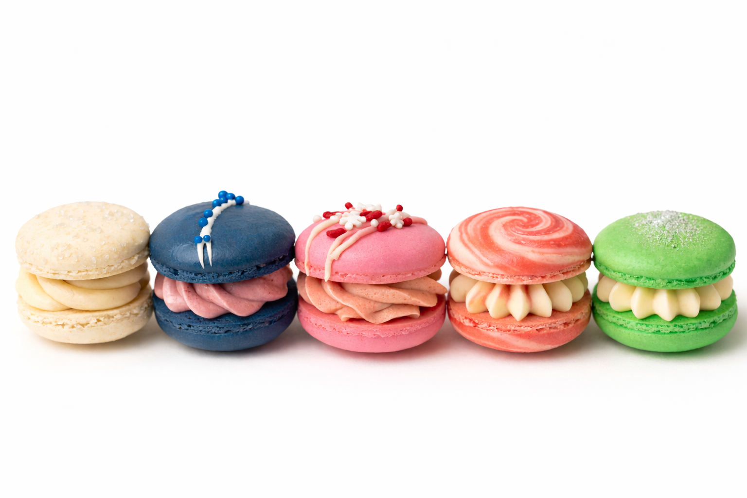 Our winter flavors have arrived—rich, cozy, and full of cold-weather comfort. Think warm spices, bright fruits, creamy fillings, and that perfect winter-day indulgence, all in macaron form.
